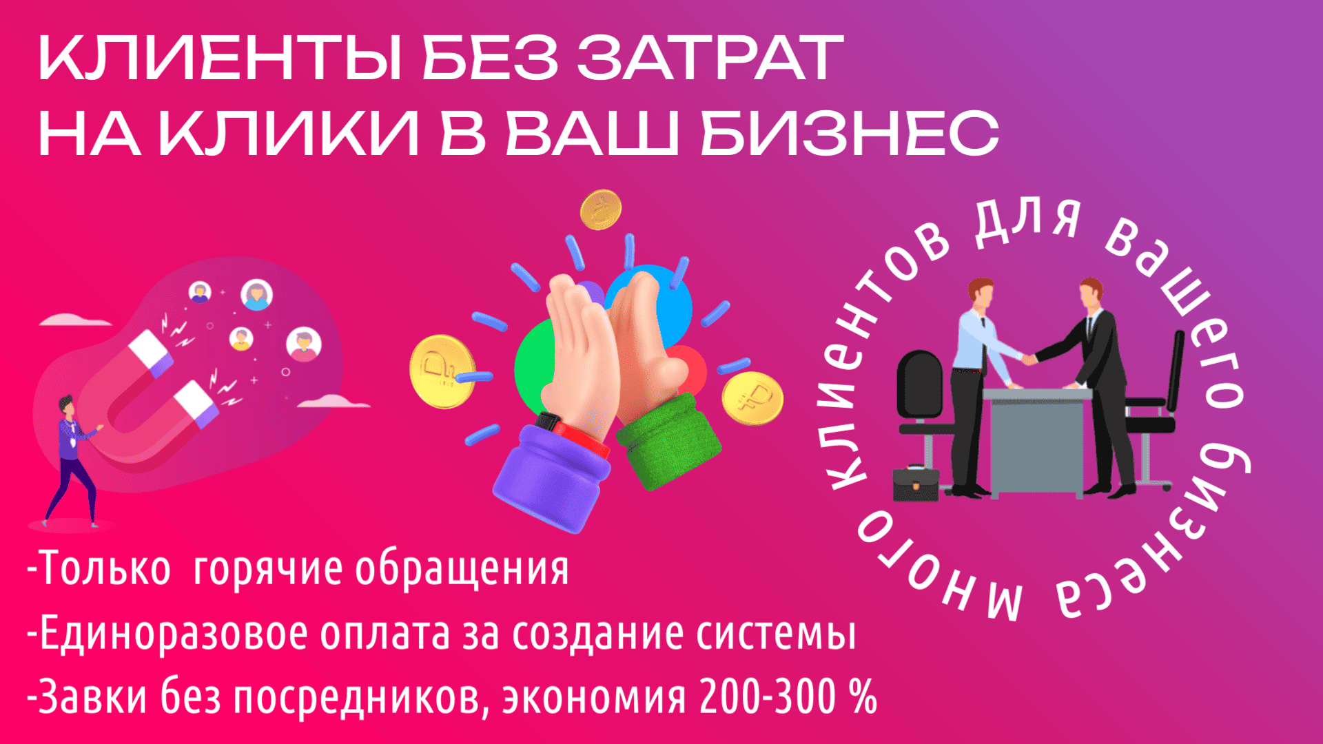 - Без затрат на рекламный бюджет, получайте только целевые заявки.